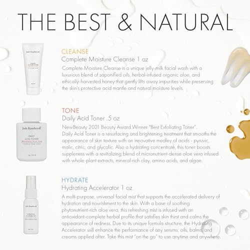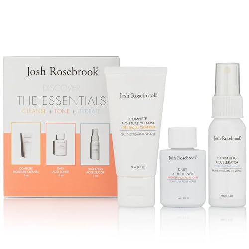 Josh Rosebrook The Essentials Kit – Cleanse, Tone & Hydrate Skincare Set | Complete Moisture Cleanse 1 oz, Daily Acid Toner 0.5 oz, Hydrating Accelerator 1 oz | Travel Size Facial Skin Care